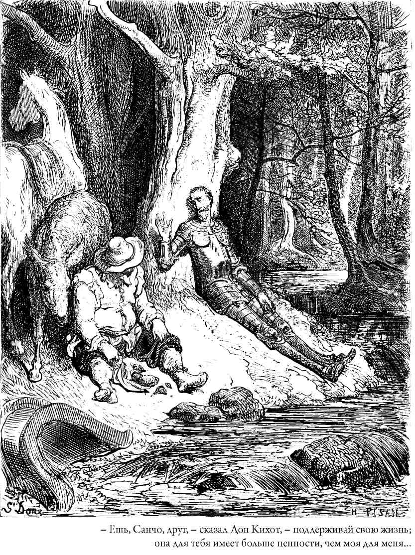 но тем не менее племянница спокойно ела, ключница попивала, а Санчо Панса