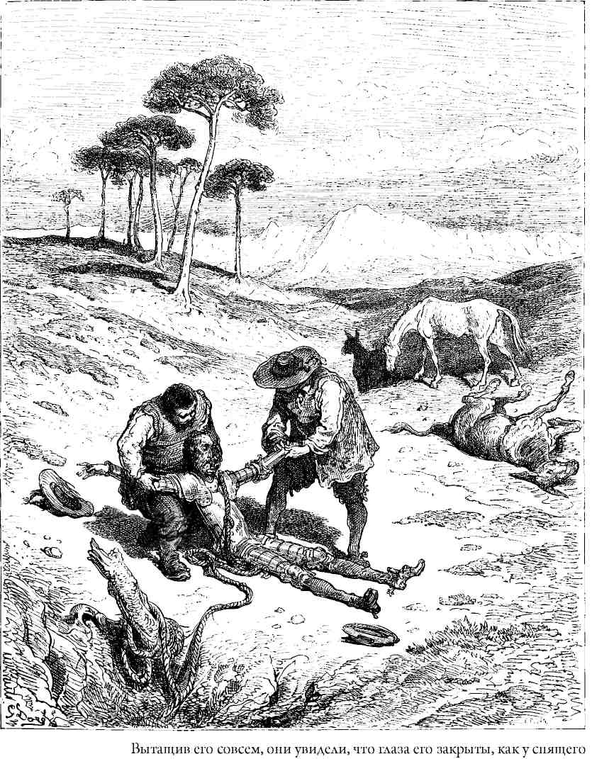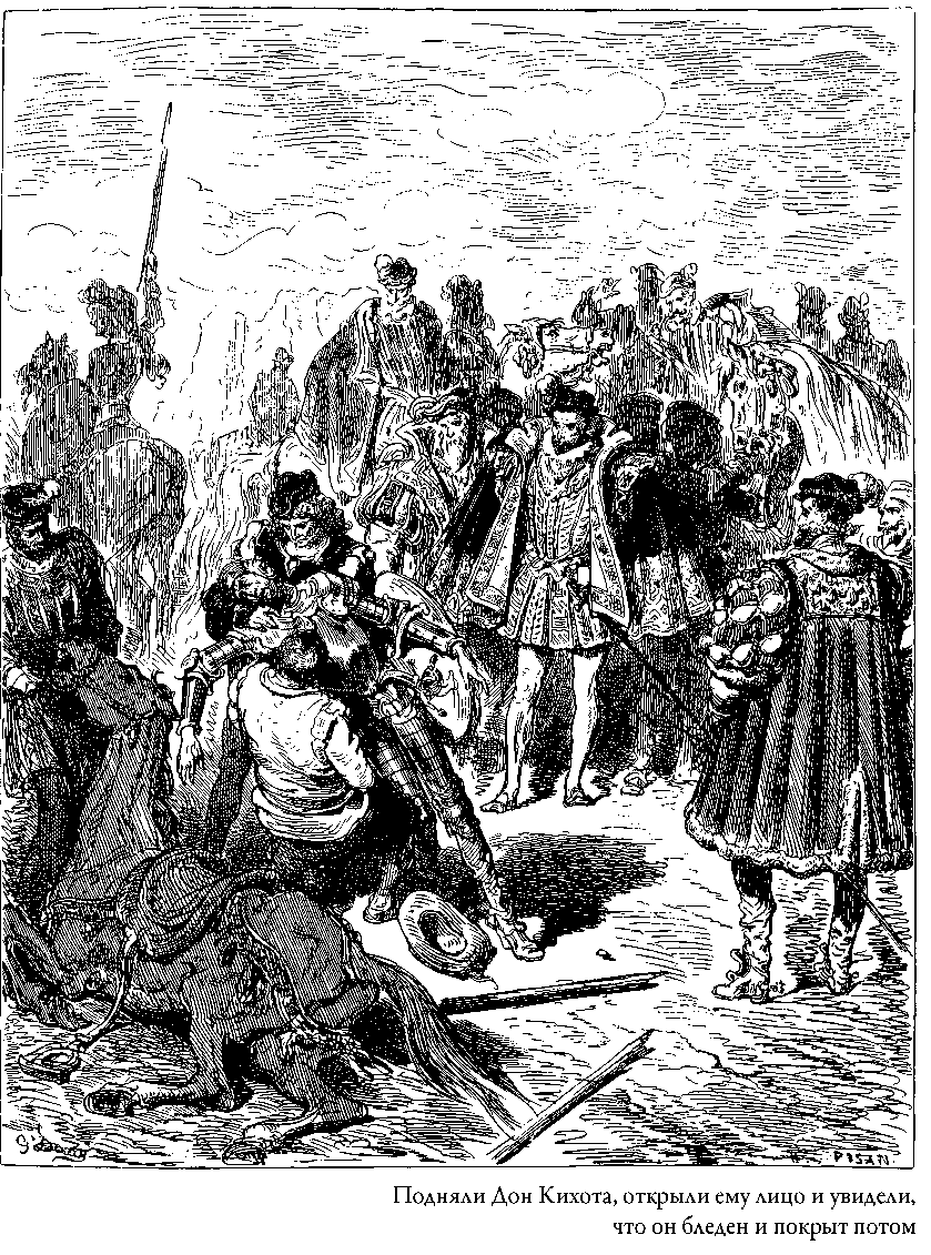 Таков был конец остроумно-изобретательного идальго ламанчского, родину