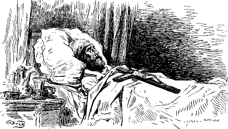 растянувшись во всю длину на постели. Все встревожились и бросились на