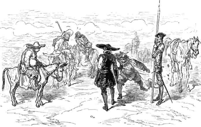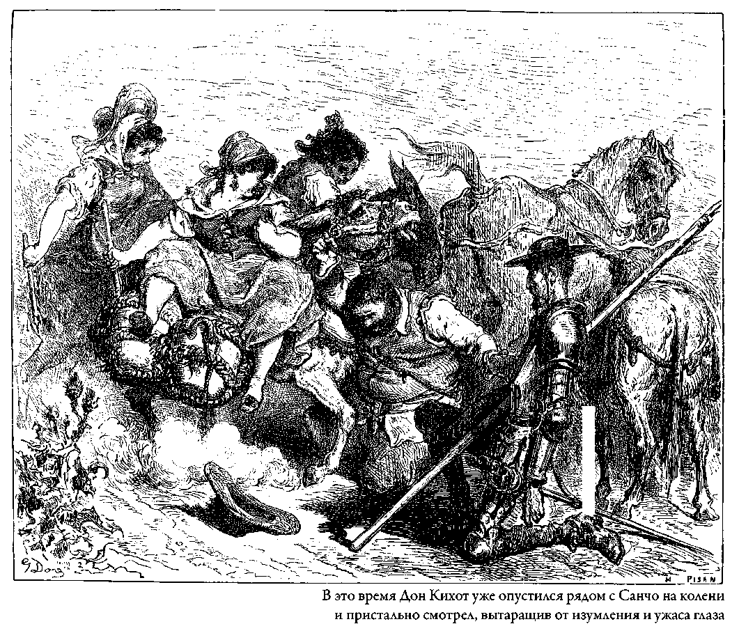 Кихот рассказал, будто он их видел в глубокой пещере Монтесинос, но