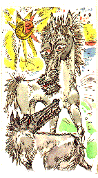 Через некоторое время раздается глухое рычание стаи, стук копыт, ржание, стон.