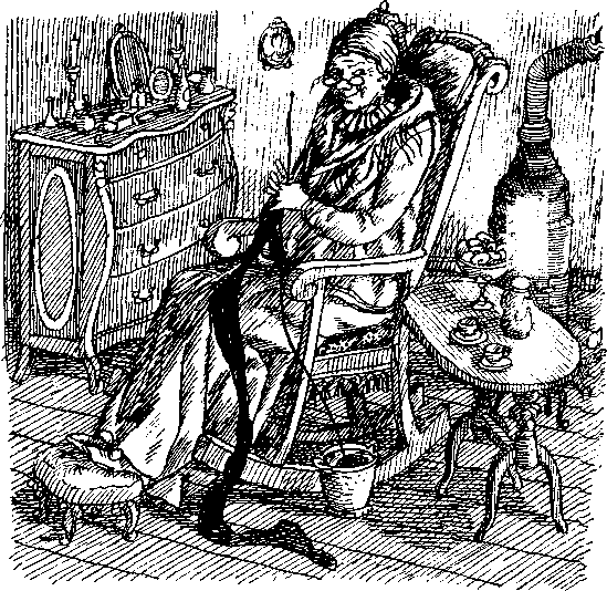 Заметить, что старуха на самом-то деле колдунья, он, конечно, не мог. Сзади,