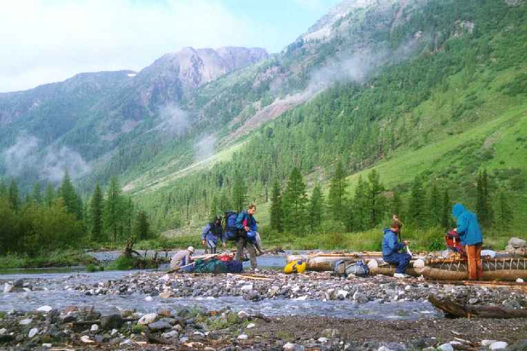 Есть и что-то типа турбаз. Видели коммерческий сплав: многотонный кат с