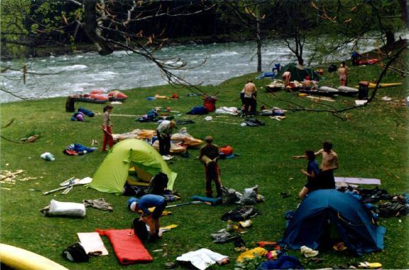 большая поляна на правом берегу. Группа из Леракта стоит на той же поляне.