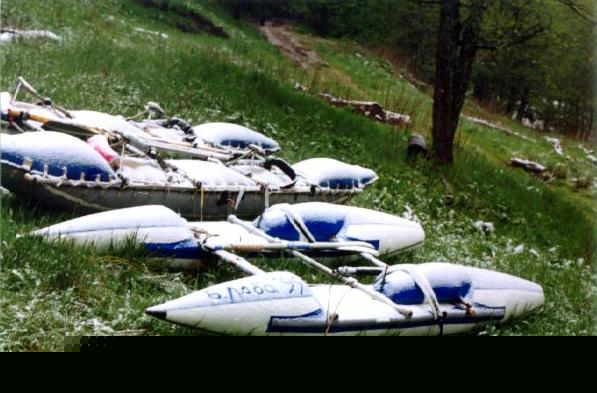 Состав группы. Катамаран двойка (а-ля Рапира) "Дон и Магдалина" Кирилл Грошенков (капитан) Сергей Волков Катамаран двойка (Тритон-2) "Санта Хавронья" Роман Медведев Юля Бронер Катамаран четверка "Голубой Дунай" Коля Чепурышкин Игорь Конешов Алексей Макушин Леха Казаков (капитан) Катамаран двойка (Рапира) "Невинность" Маха Бабанова Гуля Воронова Каяк Макс Сопрунов (руководитель сей экспедиции) |