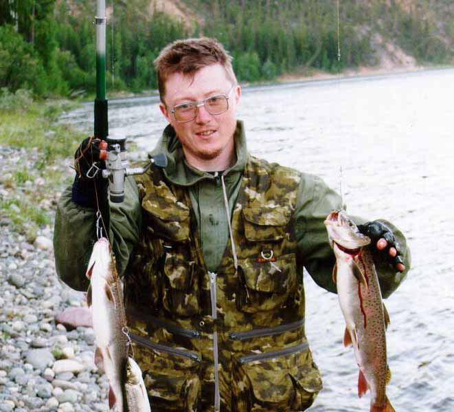 В этот день поймал первого хариуса нахлыстом. До устья Чаи нам осталось