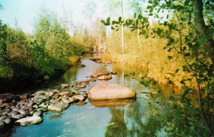 Затем начинается река шириной 10-15 м, глубиной до 2 м, прак-