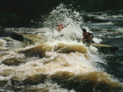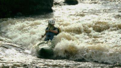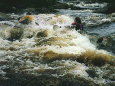 400м (с перекатом), есть камни, на выходе в струе большой надводный камень, с