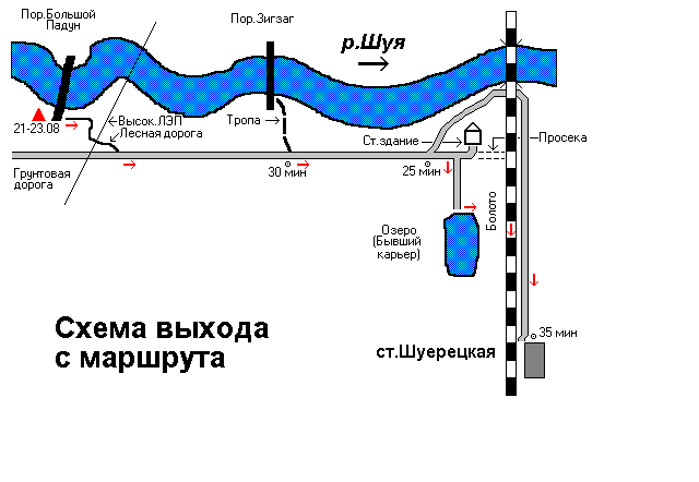 МАРШРУТ: ст.Беломорск - пос.Лехта - оз.Шуеозеро - р.Шуя - ст.Шу-