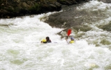 Не преминув поставить еще одну пробоину, порог прошли Димка (он опять орал "Держать!") с Кирой на "Сайгаке" и Андрюша на "Матрасе". Вася на "ЛГ" страховал с воды.