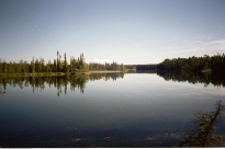 Трое из вышеозначенных членов ТНБ, а именно Дима, Вася и автор, уже бывали на Умбе в 1995 г. Правда, шли мы ее тогда от самых верховий (заброска через Оленегорск). Выше Умбозера река красива (впрочем, как и ниже), но изобилует завалами, и большое количество обносов и проводок немного достает. Умбозеро величественно и сурово, однако его проход при сильном ветре затруднен, если вообще возможен. Порог Островной ни интереса, ни сложности не представляет. Места для стапеля на обоих берегах вблизи моста многочисленны, хотя и здорово засижены. В 1995 г. мы стояли три дня на очень хорошем и почти чистом месте, которое просматривается с железнодорожного моста вверх на левом (по течению) берегу. Правда, тропка идет по небольшому болотцу.