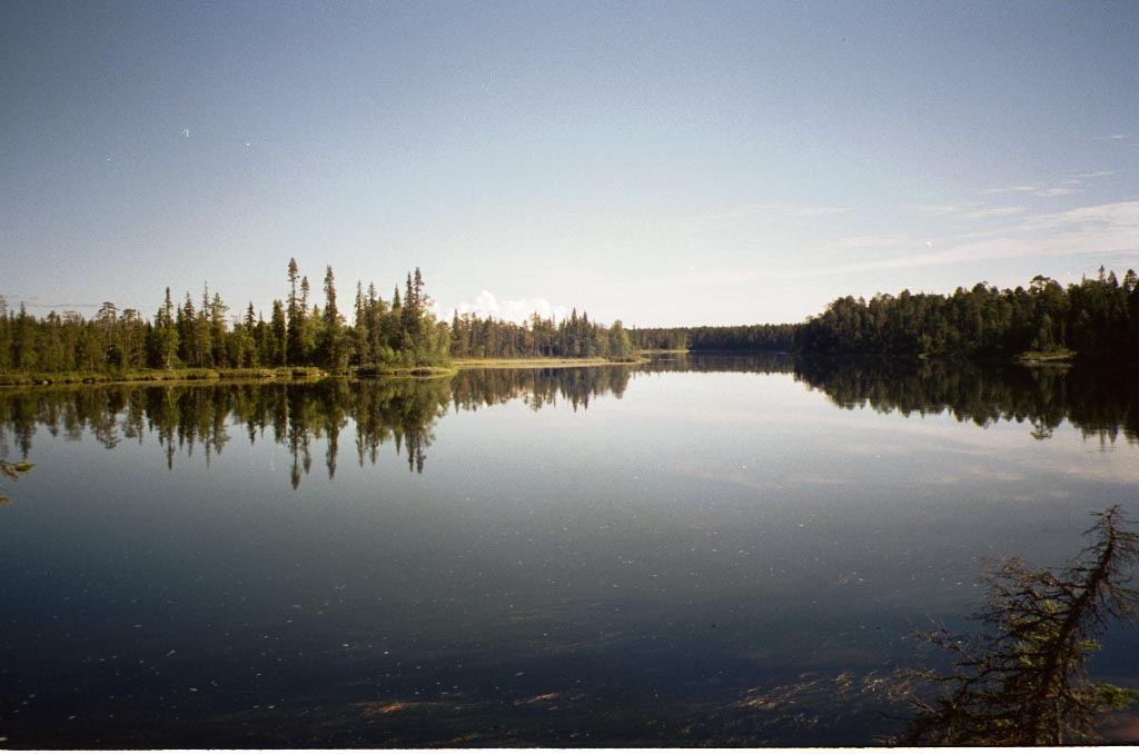 Погода. По результатам почти месячных в сумме наблюдений в 1995 и 1999 гг. можно сделать следующее обобщение. Для июля-августа на Кольском характерна дневная температура около 15°С и ночная около 6° (а один или два раза - до нуля). В 1999 г. днем температура поднималась до 23°С. Дожди редки - раз в два-три дня. Грозы - еще реже. Духоты нет в помине. Безоблачность является исключением, и небо радует глаз разнообразными расцветками - от свинцово-черных туч (1995) до кучевых и перистых облаков самых причудливых форм и размеров (1999). Иными словами - по нормам средней полосы на Кольском всегда стоит преддождевая погода.